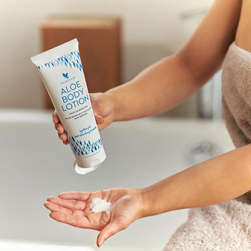 Aloe Body Lotion de la Forever este crema hidratanta de zi cu zi perfecta pentru ca pielea sa se simta neteda, hidratata si sanatoasa. Formula noastra usoara se absoarbe rapid pentru a oferi, aproape instantaneu, beneficiile din Aloe vera pura si alte ingrediente hidratante.