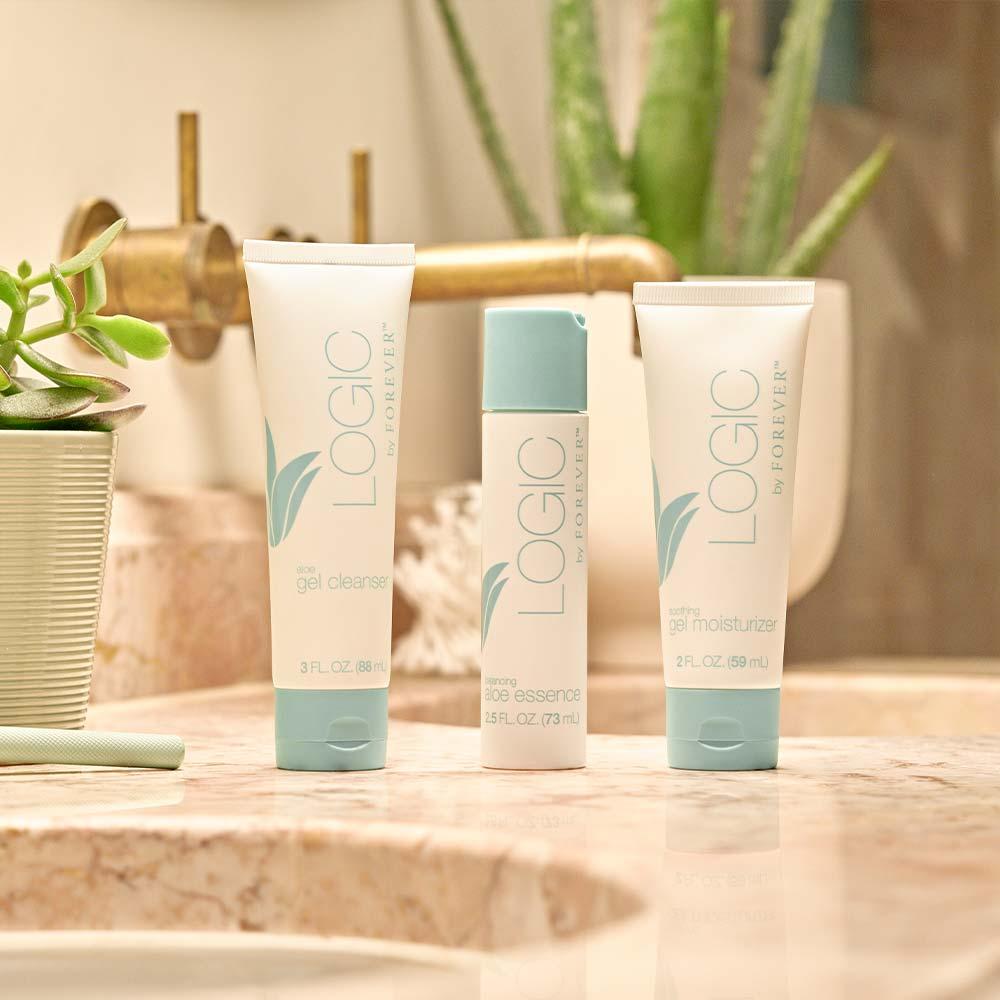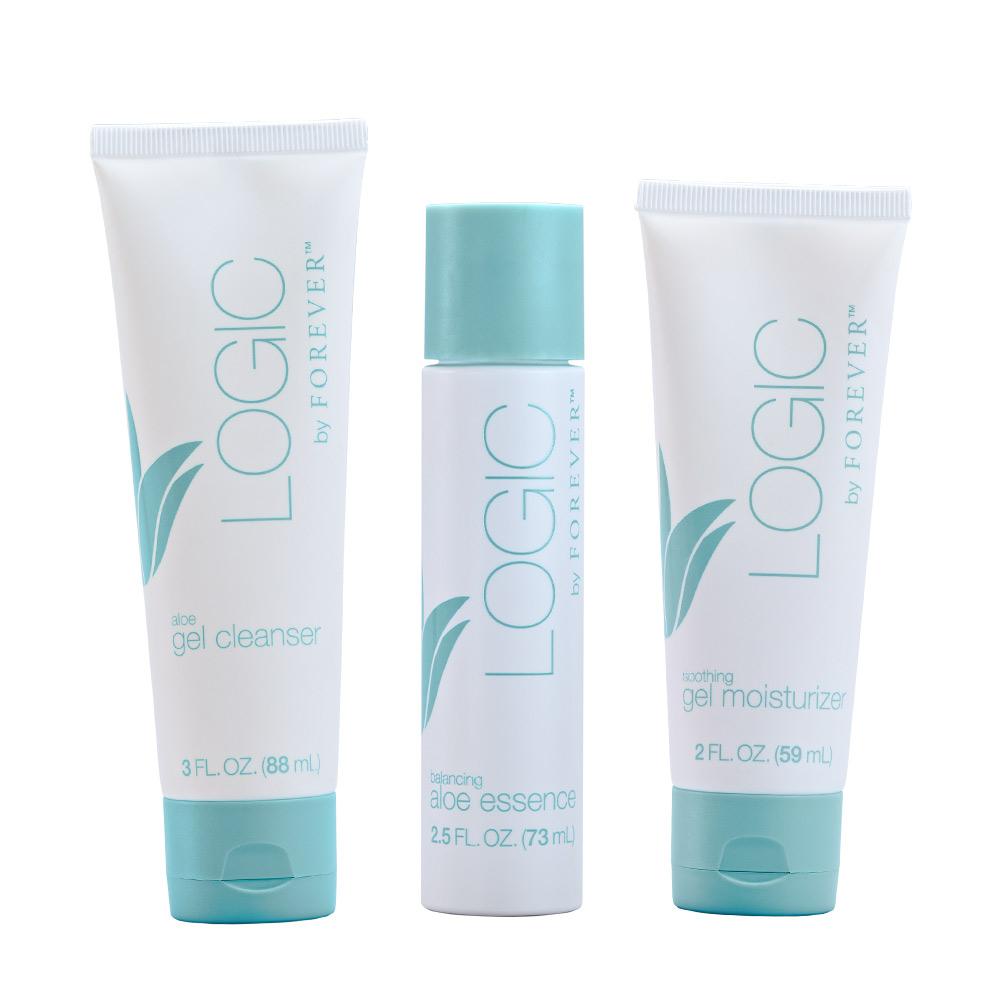 Logic by Forever™ Kit iti aduce o reducere de 5 euro fata de pretul individual al produselor si contine: Aloe Gel Cleanser x 88 ml, Balancing Essence x 73 ml, Soothing Gel Moisturizer x 59 ml.